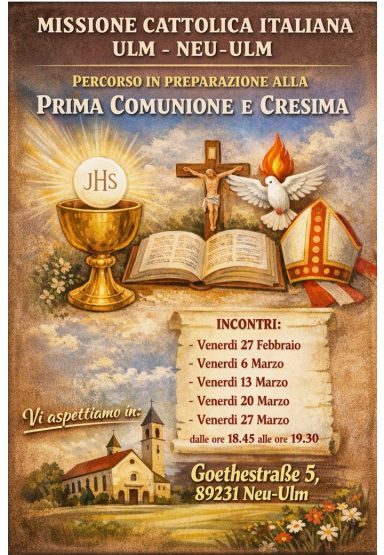 Questo mese le nostre sante messe si terranno la domenica nella chiesa di St. Michael zu den Wengen a Ulm alle ore 17:00.